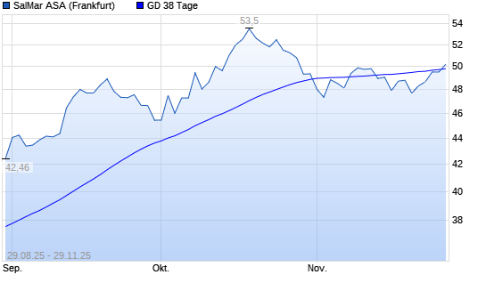 Mit dem Anstieg auf 50,20 EUR hat die Salmar ASA-Aktie am 28.11.2025 die 38-Tage-Linie nach oben gekreuzt.Die Salmar ASA-Aktie befindet sich seit dem 01.09.2025 im langfristigen Aufwärtstrend ...weiterlesen