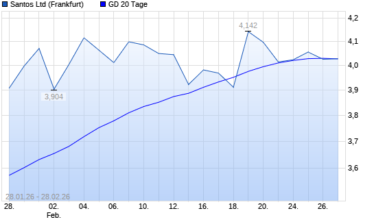 Mit dem Anstieg auf 4,03 EUR hat die Santos-Aktie am 27.02.2026 die 20-Tage-Linie nach oben gekreuzt.Die Santos-Aktie befindet sich seit dem 27.01.2026 im langfristigen Aufwärtstrend ...weiterlesen