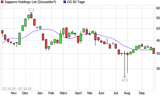 Mit dem Rücksetzer auf 41,40 EUR hat die Sapporo Holdings-Aktie am 01.10.2025 die 50-Tage-Linie nach unten gekreuzt.Die Sapporo Holdings-Aktie befindet sich seit dem 13.05.2025 im langfristigen ...weiterlesen