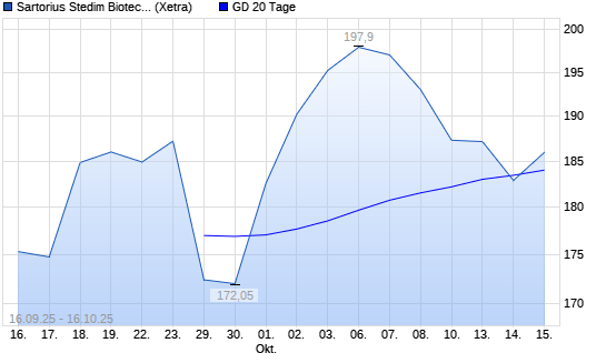 Mit dem Rücksetzer auf 184,60 EUR hat die Sartorius Stedim Biotech-Aktie am 15.10.2025 die 20-Tage-Linie nach unten gekreuzt.Die Sartorius Stedim Biotech-Aktie befindet sich seit dem 10.10.2025 ...weiterlesen