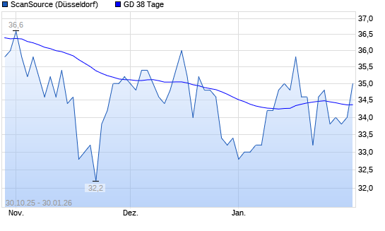 Mit dem Anstieg auf 34,40 EUR hat die ScanSource-Aktie am 29.01.2026 die 38-Tage-Linie nach oben gekreuzt.Die ScanSource-Aktie befindet sich seit dem 21.01.2026 im langfristigen Abwärtstrend ...weiterlesen