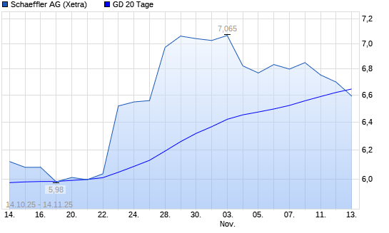 Mit dem Rücksetzer auf 6,43 EUR hat die Schaeffler-Aktie am 13.11.2025 die 20-Tage-Linie nach unten gekreuzt.Die Schaeffler-Aktie befindet sich seit dem 24.06.2025 im langfristigen Aufwärtstrend ...weiterlesen
