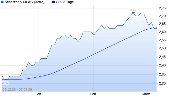 Mit dem Rücksetzer auf 2,60 EUR hat die Scherzer & Co.-Aktie am 06.03.2026 die 38-Tage-Linie nach unten gekreuzt.Die Scherzer & Co.-Aktie befindet sich seit dem 29.09.2025 ...weiterlesen