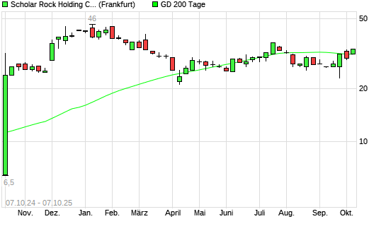 Mit dem Anstieg auf 33,60 EUR hat die Scholar Rock Holding-Aktie am 06.10.2025 die 200-Tage-Linie nach oben gekreuzt.Die Scholar Rock Holding-Aktie befand sich seit dem 01.10.2025 im langfristigen ...weiterlesen