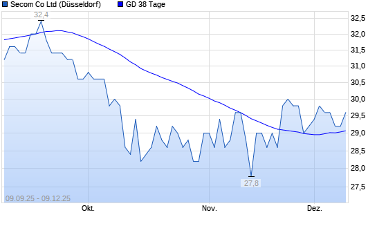 Mit dem Rücksetzer auf 30,00 EUR hat die Secom-Aktie am 09.01.2026 die 20-Tage-Linie nach unten gekreuzt.Die Secom-Aktie befindet sich seit dem 19.09.2025 im langfristigen Abwärtstrend ...weiterlesen