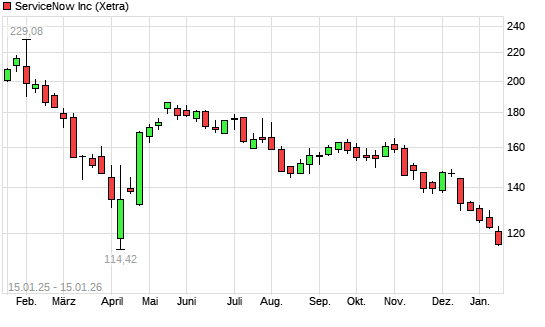 Mit dem Rücksetzer auf 115,18 EUR hat die ServiceNow-Aktie (ISIN US81762P1021) am 14.01.2026 ein neues 12-Monats-Tief erreicht und damit den Kurs vom 13.01.2026 eingestellt.Die ServiceNow-Aktie ...weiterlesen