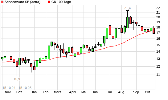Mit dem Rücksetzer auf 17,00 EUR hat die Serviceware-Aktie am 14.10.2025 die 100-Tage-Linie nach unten gekreuzt.Die Serviceware-Aktie befindet sich seit dem 13.01.2025 im langfristigen ...weiterlesen