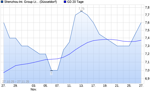 Mit dem Anstieg auf 7,60 EUR hat die Shenzhou International Group-Aktie am 26.11.2025 die 20-Tage-Linie nach oben gekreuzt.Die Shenzhou International Group-Aktie befindet sich seit dem 29.09.2025 ...weiterlesen