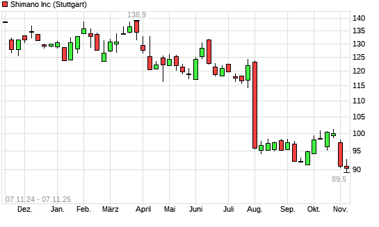 Mit dem Rücksetzer auf 89,80 EUR hat die Shimano-Aktie (ISIN JP3358000002) am 06.11.2025 ein neues 10-Jahres-Tief erreicht und damit den Kurs vom 31.10.2025 eingestellt.Die Shimano-Aktie ...weiterlesen