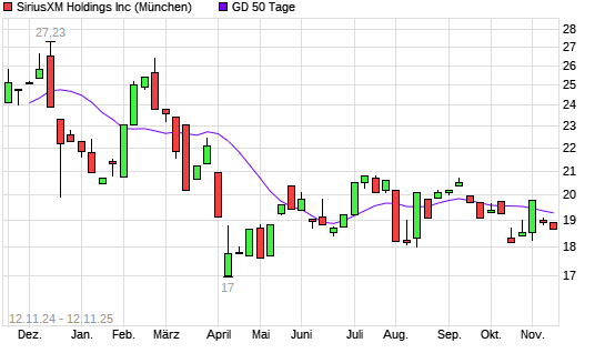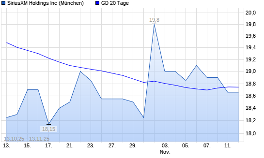 Mit dem Rücksetzer auf 18,45 EUR hat die SiriusXM Holdings [Common Shares]-Aktie am 12.11.2025 die 20-Tage-Linie nach unten gekreuzt.Die SiriusXM Holdings [Common Shares]-Aktie befindet ...weiterlesen