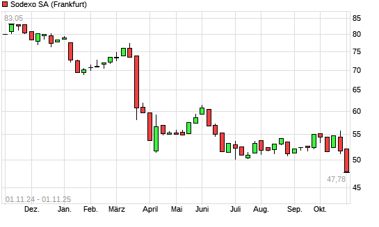 Mit dem Rücksetzer auf 47,78 EUR hat die Sodexo-Aktie (ISIN FR0000121220) am 31.10.2025 ein neues 3-Jahres-Tief erreicht und damit den Kurs vom 30.10.2025 eingestellt.Die Sodexo-Aktie befindet ...weiterlesen