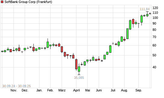 Mit dem Anstieg auf 110,50 EUR hat die Softbank Group-Aktie (ISIN JP3436100006) am 29.09.2025 ein neues All-Time-High erreicht und damit den Kurs vom 25.09.2025 eingestellt.Die Softbank Group-Aktie ...weiterlesen