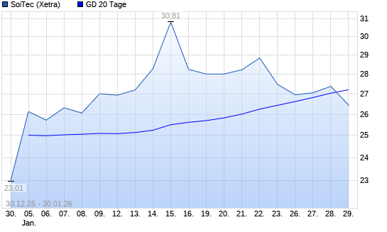 Mit dem Rücksetzer auf 26,93 EUR hat die Soitec-Aktie am 29.01.2026 die 20-Tage-Linie nach unten gekreuzt.Die Soitec-Aktie befindet sich seit dem 04.01.2024 im langfristigen Abwärtstrend ...weiterlesen