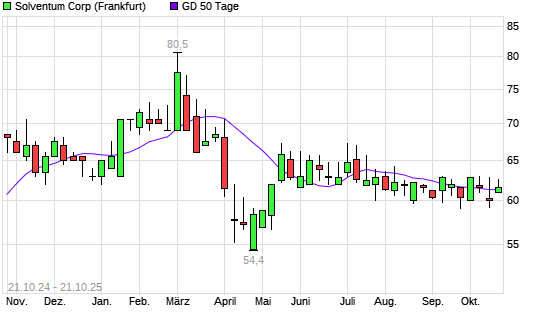 Mit dem Anstieg auf 62,40 EUR hat die Solventum Corp-Aktie am 20.10.2025 die 50-Tage-Linie nach oben gekreuzt.Die Solventum Corp-Aktie befindet sich seit dem 04.07.2025 im langfristigen Abwärtstrend ...weiterlesen