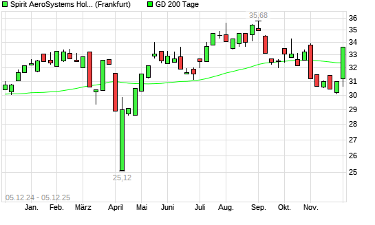 Mit dem Rücksetzer auf 30,52 EUR hat die Spirit Aerosystems-Aktie (ISIN US8485741099) am 11.11.2025 ein neues 6-Monats-Tief erreicht und damit den Kurs vom 07.11.2025 eingestellt.Die Spirit ...weiterlesen