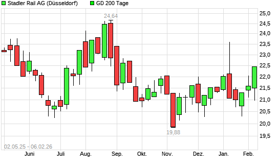 Mit dem Anstieg auf 22,24 EUR hat die Stadler Rail-Aktie am 05.02.2026 die 200-Tage-Linie nach oben gekreuzt.Die Stadler Rail-Aktie befand sich seit dem 12.01.2026 im langfristigen Abwärtstrend ...weiterlesen