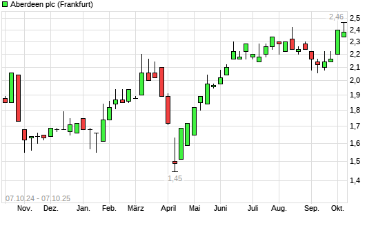 Mit dem Anstieg auf 2,46 EUR hat die Standard Life Aberdeen-Aktie (ISIN GB00BF8Q6K64) am 06.10.2025 ein neues 12-Monats-Hoch erreicht und damit den Kurs vom 12.08.2025 eingestellt.Die Standard ...weiterlesen