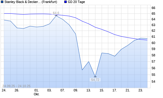 Mit dem Anstieg auf 60,78 EUR hat die Stanley Black & Decker-Aktie am 23.10.2025 die 20-Tage-Linie nach oben gekreuzt.Die Stanley Black & Decker-Aktie befindet sich seit dem 22.09.2025 im ...weiterlesen