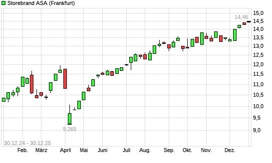 Mit dem Anstieg auf 14,41 EUR hat die Storebrand-Aktie (ISIN NO0003053605) am 29.12.2025 ein neues All-Time-High erreicht und damit den Kurs vom 22.12.2025 eingestellt.Die Storebrand-Aktie befindet ...weiterlesen