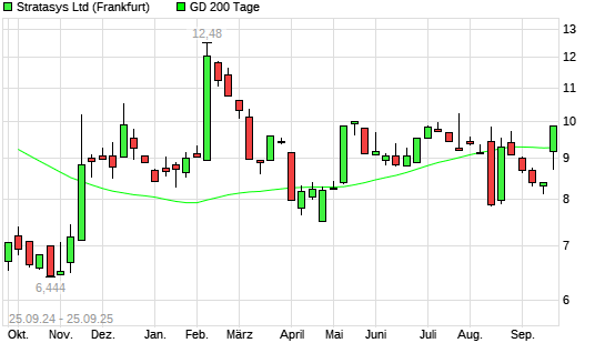 Mit dem Anstieg auf 9,82 EUR hat die Stratasys-Aktie am 24.09.2025 die 200-Tage-Linie nach oben gekreuzt.Die Stratasys-Aktie befand sich seit dem 23.09.2025 im langfristigen Abwärtstrend und ...weiterlesen