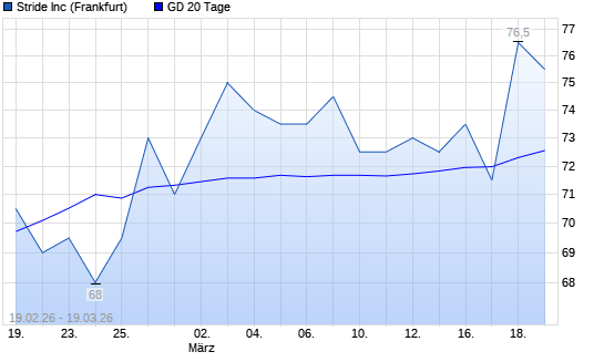 Mit dem Anstieg auf 76,50 EUR hat die Stride-Aktie am 18.03.2026 die 20-Tage-Linie nach oben gekreuzt.Die Stride-Aktie befindet sich seit dem 28.10.2025 im langfristigen Abwärtstrend ...weiterlesen