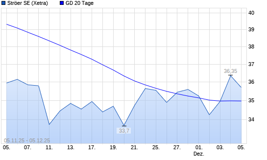 Mit dem Anstieg auf 35,45 EUR hat die Ströer-Aktie am 04.12.2025 die 20-Tage-Linie nach oben gekreuzt.Die Ströer-Aktie befindet sich seit dem 05.06.2025 im langfristigen Abwärtstrend und ...weiterlesen