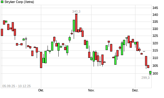 Stryker ist Teil des 250 Titel umfassenden Anlageuniversum des boerse.de-Aktienbrief Plus. In der großen Trendauswertung vom 26.12.2025 ist der Titel von Rang 168 auf Rang 166 aufgestiegen.Gesteuert ...weiterlesen