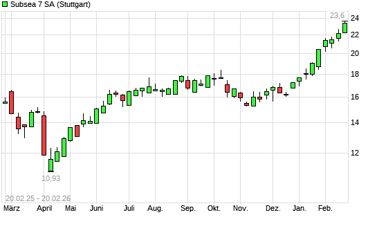 Mit dem Anstieg auf 23,40 EUR hat die Subsea 7-Aktie (ISIN LU0075646355) am 19.02.2026 ein neues All-Time-High erreicht und damit den Kurs vom 18.02.2026 eingestellt.Die Subsea ...weiterlesen