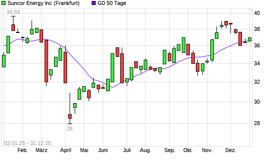 Mit dem Anstieg auf 36,97 EUR hat die Suncor Energy-Aktie am 30.12.2025 die 50-Tage-Linie nach oben gekreuzt.Die Suncor Energy-Aktie befindet sich seit dem 23.10.2025 im langfristigen Aufwärtstrend ...weiterlesen