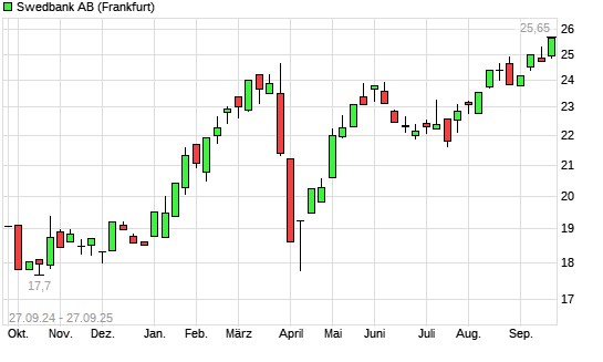 Mit dem Anstieg auf 25,65 EUR hat die Swedbank AB-Aktie (ISIN SE0000242455) am 26.09.2025 ein neues All-Time-High erreicht und damit den Kurs vom 15.09.2025 eingestellt.Die Swedbank AB-Aktie ...weiterlesen