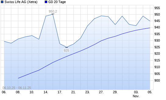 Mit dem Rücksetzer auf 938,00 EUR hat die Swiss Life-Aktie am 05.11.2025 die 20-Tage-Linie nach unten gekreuzt.Die Swiss Life-Aktie befindet sich seit dem 08.04.2025 im langfristigen Aufwärtstrend ...weiterlesen