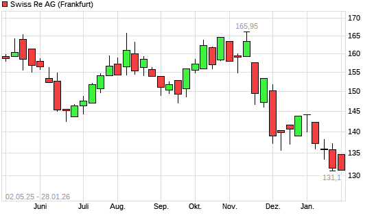 Mit dem Rücksetzer auf 131,10 EUR hat die Swiss Re-Aktie (ISIN CH0126881561) am 27.01.2026 ein neues 12-Monats-Tief erreicht und damit den Kurs vom 23.01.2026 eingestellt.Die Swiss Re-Aktie ...weiterlesen