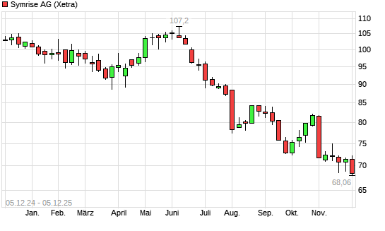 Mit dem Rücksetzer auf 67,96 EUR hat die Symrise-Aktie (ISIN DE000SYM9999) am 04.12.2025 ein neues 5-Jahres-Tief erreicht und damit den Kurs vom 03.12.2025 eingestellt.Die Symrise-Aktie ...weiterlesen