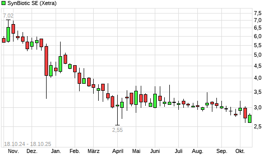Mit dem Rücksetzer auf 2,58 EUR hat die SynBiotic-Aktie (ISIN DE000A3E5A59) am 17.10.2025 ein neues All-Time-Low erreicht und damit den Kurs vom 15.10.2025 eingestellt.Die SynBiotic-Aktie ...weiterlesen