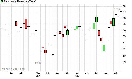 Mit dem Anstieg auf 66,19 EUR hat die Synchrony Financial-Aktie (ISIN US87165B1035) am 28.11.2025 ein neues 6-Monats-Hoch erreicht und damit den Kurs vom 27.11.2025 eingestellt.Die Synchrony ...weiterlesen