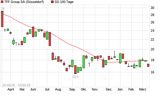 Mit dem Rücksetzer auf 17,25 EUR hat die TFF Group-Aktie am 09.03.2026 die 100-Tage-Linie nach unten gekreuzt.Die TFF Group-Aktie befindet sich seit dem 23.05.2024 im ...weiterlesen