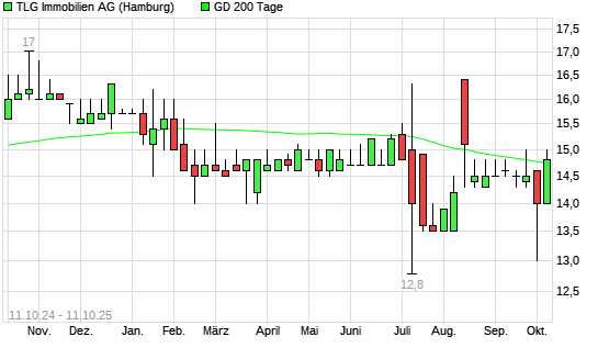 Mit dem Anstieg auf 14,80 EUR hat die TLG Immobilien-Aktie am 10.10.2025 die 200-Tage-Linie nach oben gekreuzt.Die TLG Immobilien-Aktie befand sich seit dem 08.10.2025 im langfristigen Abwärtstrend ...weiterlesen