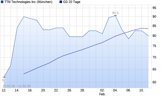 Mit dem Rücksetzer auf 81,00 EUR hat die TTM Technologies-Aktie am 10.02.2026 die 20-Tage-Linie nach unten gekreuzt.Die TTM Technologies-Aktie befindet sich seit dem 02.05.2025 im langfristigen ...weiterlesen