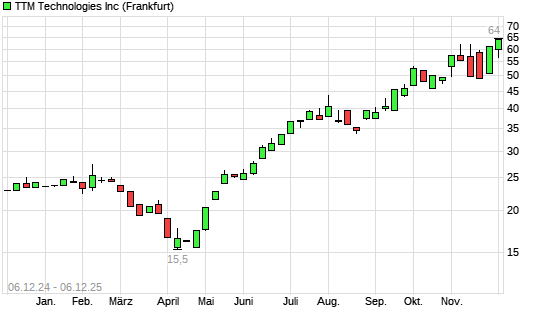Mit dem Anstieg auf 64,00 EUR hat die TTM Technologies-Aktie (ISIN US87305R1095) am 05.12.2025 ein neues All-Time-High erreicht und damit den Kurs vom 06.11.2025 eingestellt.Die TTM Technologies-Aktie ...weiterlesen