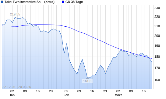 Mit dem Rücksetzer auf 176,60 EUR hat die Take 2 Interactive-Aktie am 19.03.2026 die 38-Tage-Linie nach unten gekreuzt.Die Take 2 Interactive-Aktie befindet sich seit dem ...weiterlesen