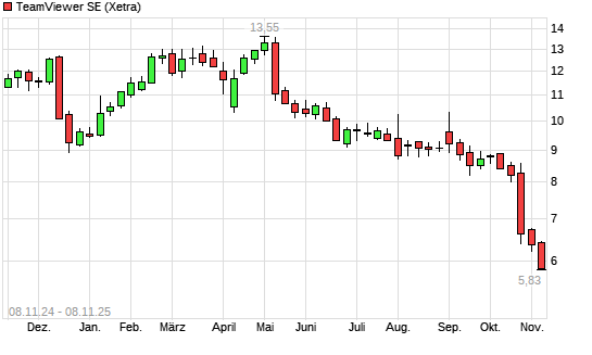 Mit dem Rücksetzer auf 5,89 EUR hat die TeamViewer-Aktie (ISIN DE000A2YN900) am 07.11.2025 ein neues All-Time-Low erreicht und damit den Kurs vom 05.11.2025 eingestellt.Die TeamViewer-Aktie ...weiterlesen