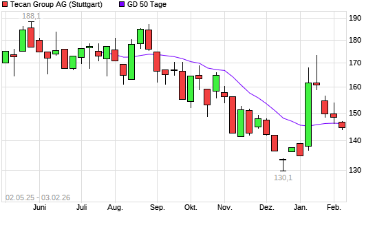 Mit dem Rücksetzer auf 145,80 EUR hat die Tecan Group-Aktie am 02.02.2026 die 50-Tage-Linie nach unten gekreuzt.Die Tecan Group-Aktie befindet sich seit dem 15.01.2026 im langfristigen ...weiterlesen