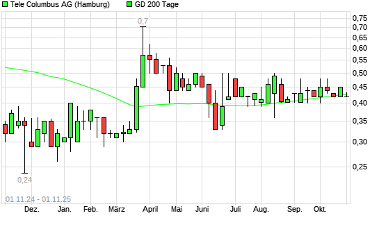 Mit dem Rücksetzer auf 0,42 EUR hat die Tele Columbus-Aktie am 31.10.2025 die 200-Tage-Linie nach unten gekreuzt.Die Tele Columbus-Aktie befand sich seit dem 30.10.2025 im langfristigen ...weiterlesen