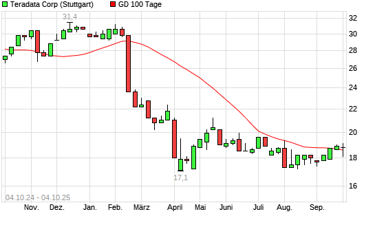 Mit dem Anstieg auf 19,20 EUR hat die Teradata-Aktie am 03.10.2025 die 100-Tage-Linie nach oben gekreuzt.Die Teradata-Aktie befindet sich seit dem 12.02.2025 im langfristigen Abwärtstrend und ...weiterlesen