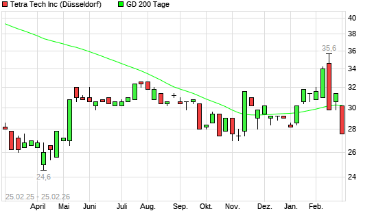 Mit dem Anstieg auf 29,00 EUR hat die Tetra Tech-Aktie am 12.12.2025 die 50-Tage-Linie nach oben gekreuzt.Die Tetra Tech-Aktie befindet sich seit dem 08.12.2025 im langfristigen Abwärtstrend ...weiterlesen