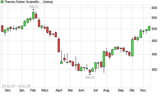 Mit dem Anstieg auf 511,20 EUR hat die Thermo Fisher-Aktie (ISIN US8835561023) am 13.11.2025 ein neues 6-Monats-Hoch erreicht und damit den Kurs vom 11.11.2025 eingestellt.Die Thermo Fisher-Aktie ...weiterlesen