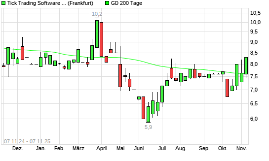 Mit dem Rücksetzer auf 7,50 EUR hat die Tick Trading Software-Aktie am 06.11.2025 die 200-Tage-Linie nach unten gekreuzt.Die Tick Trading Software-Aktie befand sich seit dem 05.11.2025 ...weiterlesen