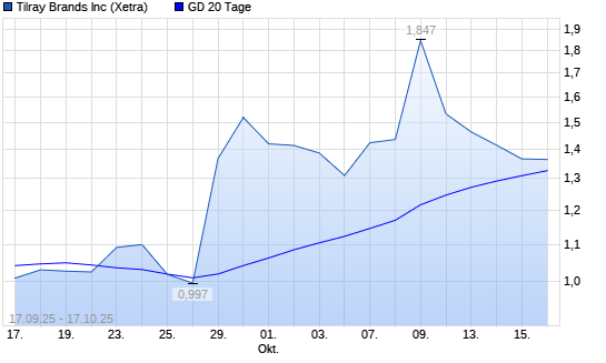Mit dem Rücksetzer auf 1,30 EUR hat die Tilray-Aktie am 16.10.2025 die 20-Tage-Linie nach unten gekreuzt.Die Tilray-Aktie befindet sich seit dem 11.08.2025 im langfristigen Aufwärtstrend ...weiterlesen
