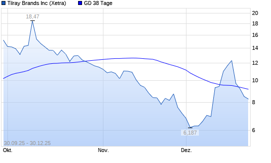 Mit dem Rücksetzer auf 7,89 EUR hat die Tilray-Aktie am 29.12.2025 die 38-Tage-Linie nach unten gekreuzt.Die Tilray-Aktie befindet sich seit dem 12.12.2025 im langfristigen Aufwärtstrend ...weiterlesen