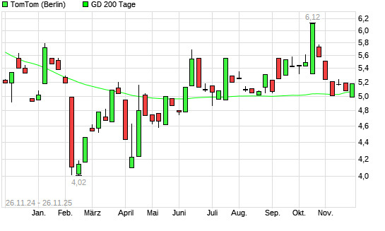 Mit dem Anstieg auf 5,18 EUR hat die TomTom-Aktie am 25.11.2025 die 200-Tage-Linie nach oben gekreuzt.Die TomTom-Aktie befand sich seit dem 20.11.2025 im langfristigen Abwärtstrend und hat in ...weiterlesen